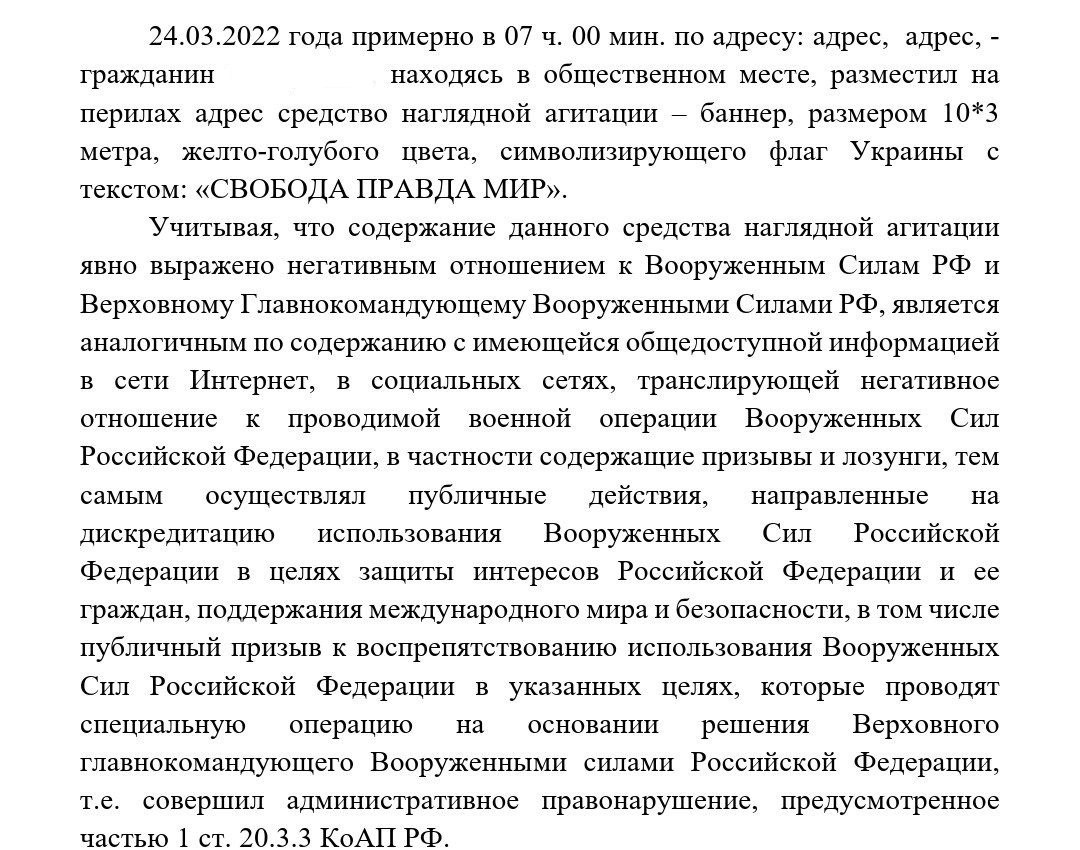 Таким образом использованное Л.Б. Сумм средство наглядной агитации направлено на негативное отношение к проводимой военной операции Вооруженных Сил Российской Федерации». (Отсюда.)