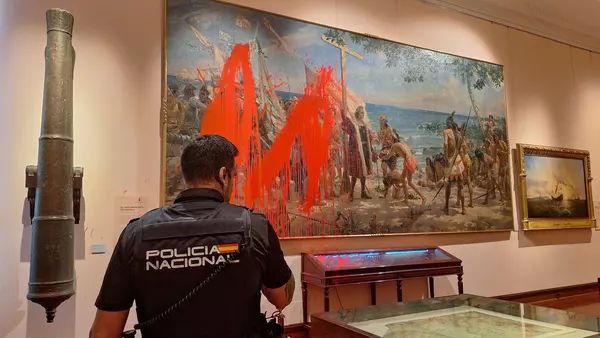вчера же две экотеррористски из Futuro Vegetal облили биоразлагаемой краской картину "Первое поклонение Христофору Колумбу" в Военно-морском музее.
