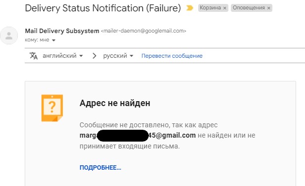 самое интересное - написал на этот адрес (marga....1945@gmail.com), что мне приходят уведомления, просьба отвязать телефон - Gmail сообщает, что такой почты не существует.