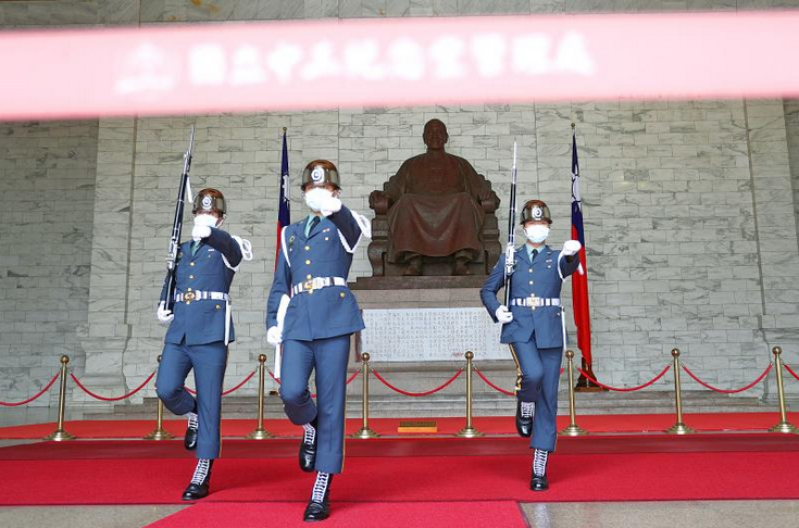 На фотографии - почетный караул рядом со статуей Чан Кайши в Мемориале Чан Кайши в центре Тайбея. На сегодняшний день почетный караул уже убран по решению правительства Тайваня, чтобы прекратить восхваление авторитаризма.