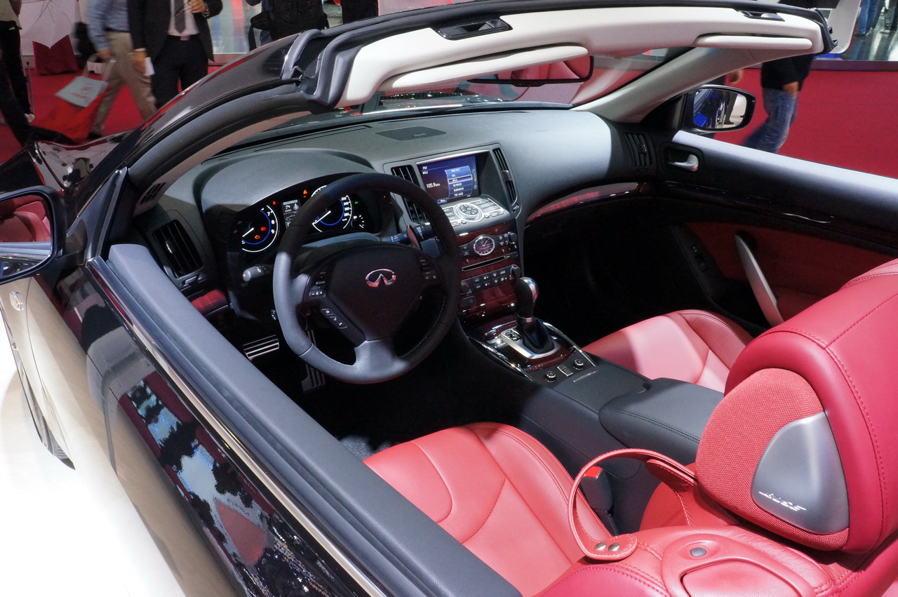 Infiniti G37 Cabrio - мощный кабриолет с жесткой складывающейся крышей на электроприводе. Крыша убирается за 25 секунд. Двигатель VQ37VHR развивает 333 л.с., крутящий момент - 363 Нм.