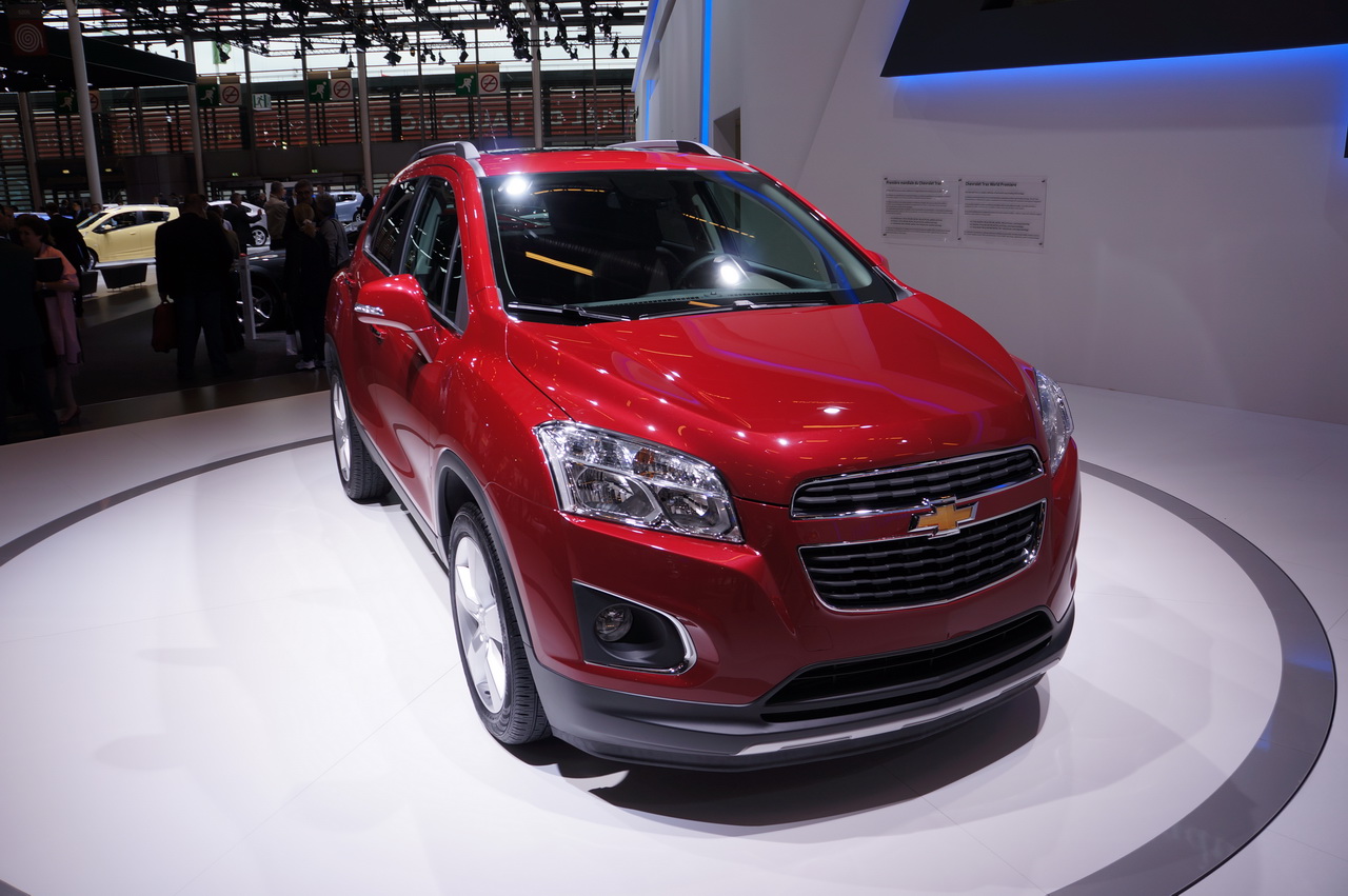 Одна из главных представлямых на стенде машин - компактный кроссовер Chevrolet Trax, которого наши, разумеется, называли "Шевроле Трах". Впрочем, злые люди из компании "Шевроле" сказали, что эта модель в России будет носить другое название - "Трэкер" (Tracker).