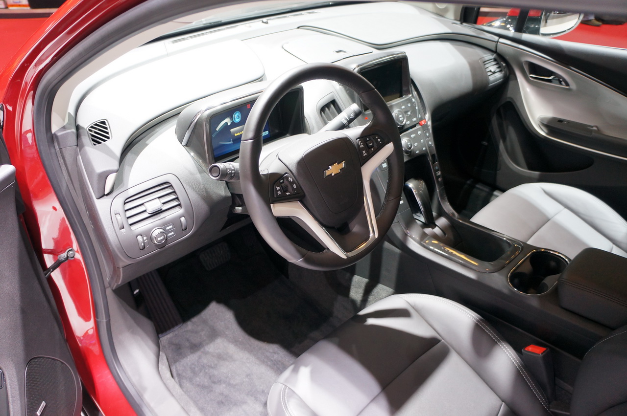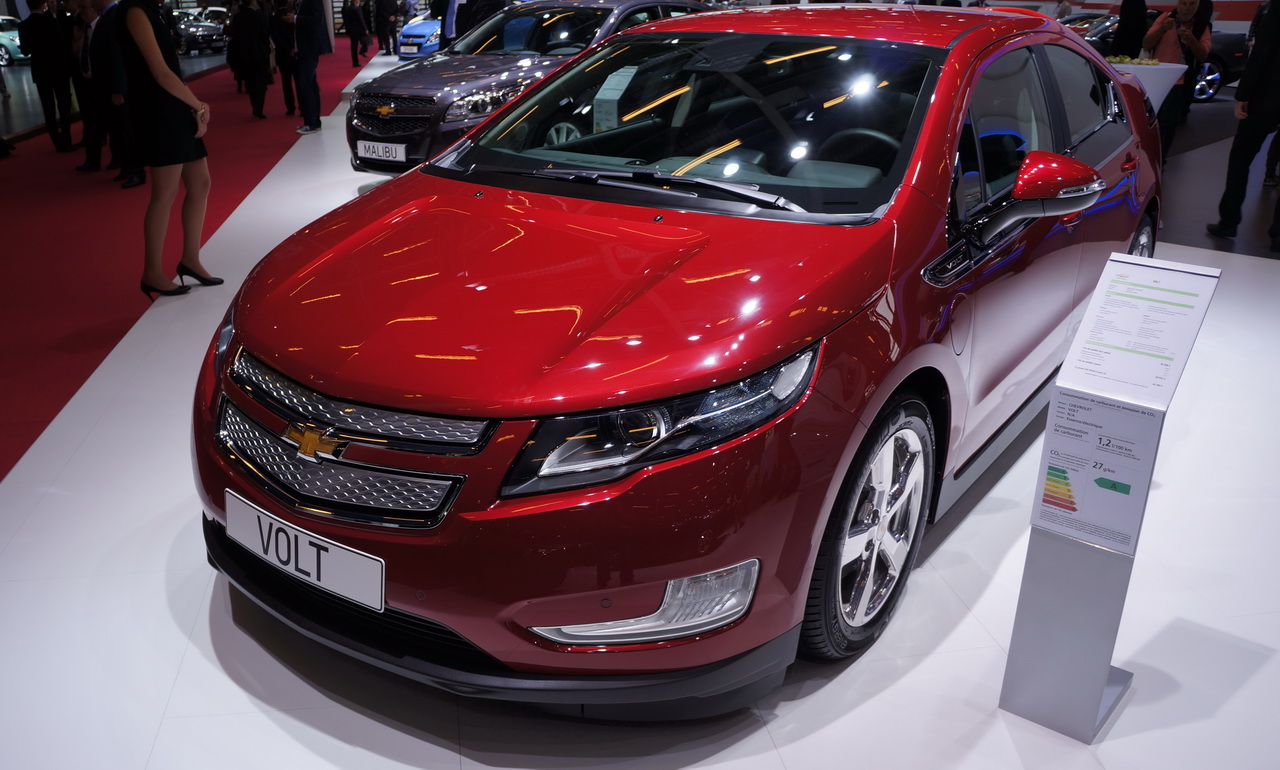 Гибрид Chevrolet Volt. Модель довольно своеобразная. Volt от остальных электрических или гибридных систем отличается тем, что на протяжении 60 км он приводится в движение электричеством, накопленным в батарее на 16 кВт/ч. Когда заряд заканчивается, встроенный генератор начинает производить электричество, питающее батареи, увеличивая дистанцию пробега аж до 500 км. (Так, по крайней мере, говорит производитель.) Полная зарядка осуществляется от обычной розетки примерно за три часа.