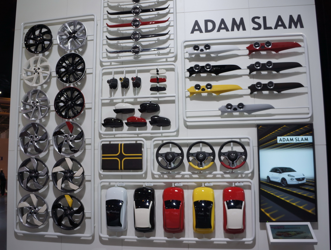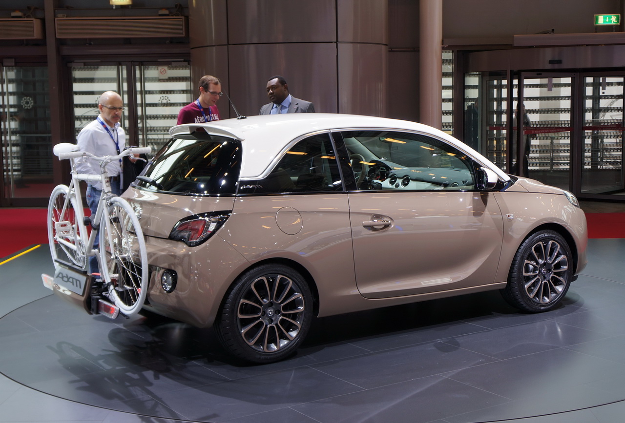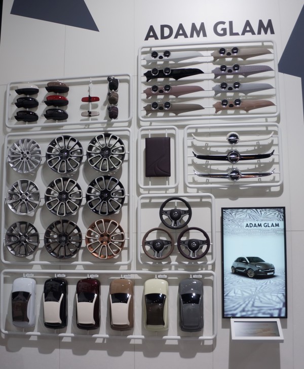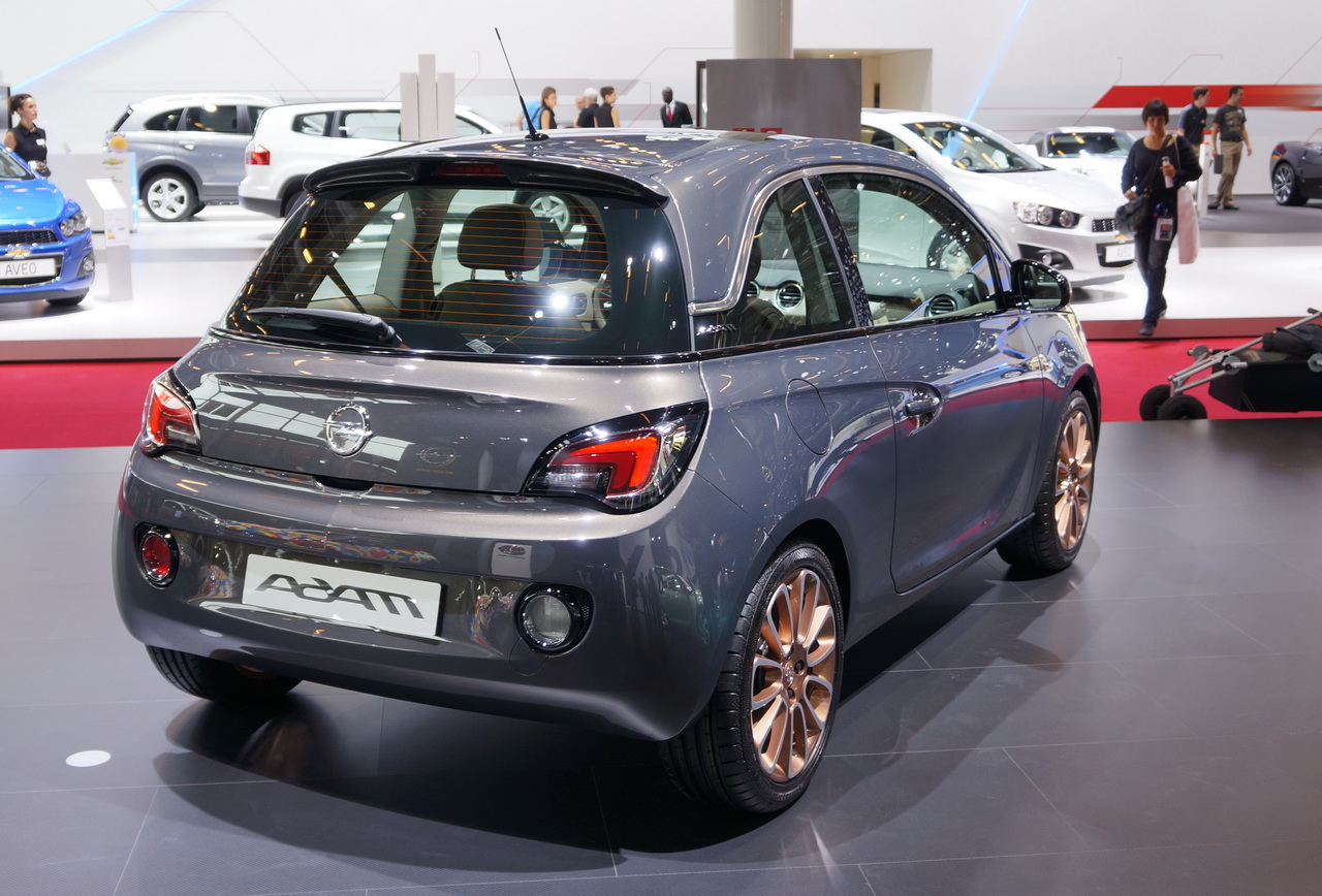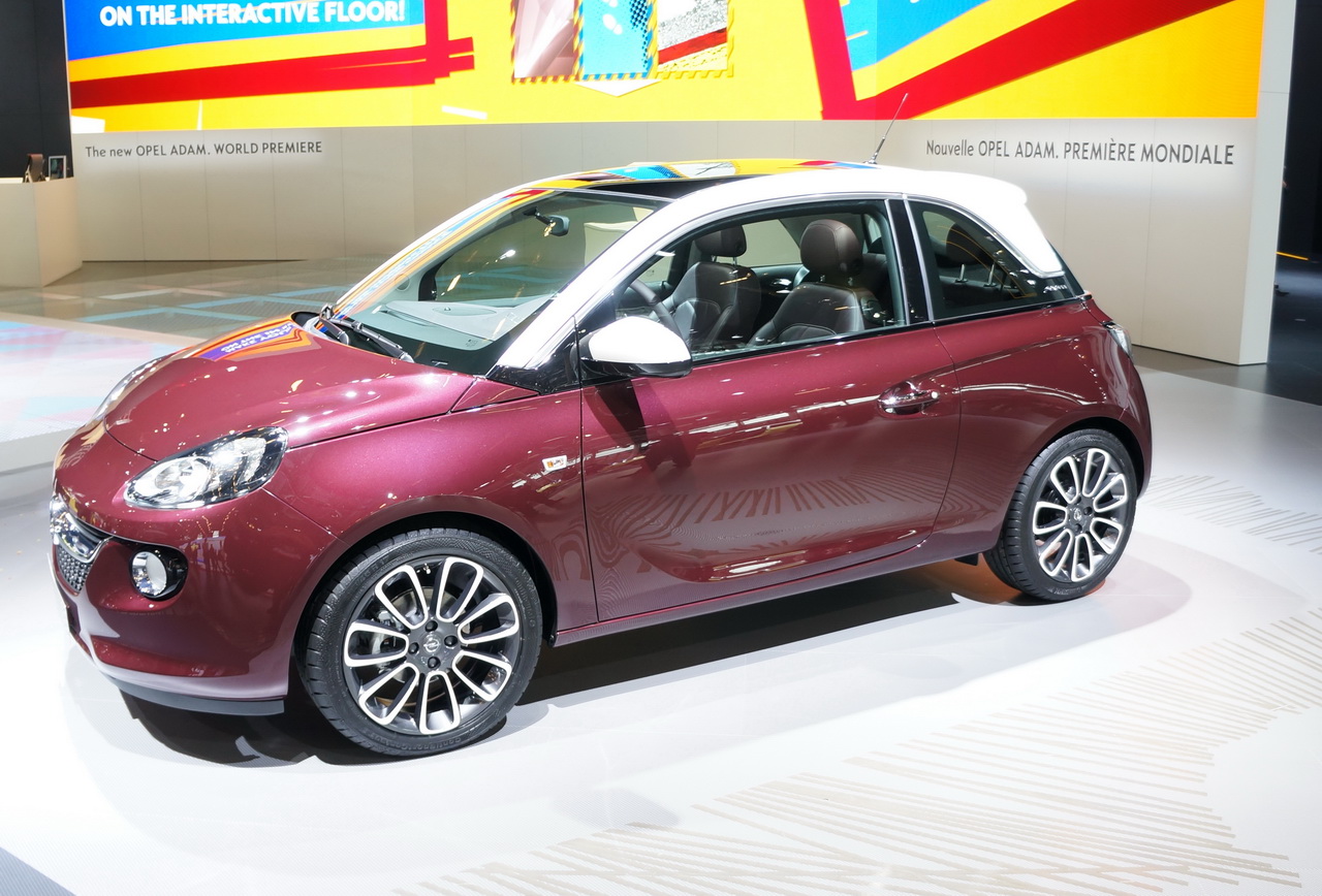 На стенде Opel аж глаза разбегались - столько машин, столько машин... Правда, довольно быстро выяснилось, что машина на парижской выставке компанией представлена всего одна - новый компакт Opel Adam. Сделан на платформе Opel Corsa, но выглядит, на мой взгляд, симпатичнее. Да и возможностей оформления по сравнению с Corsa тут больше на много порядков - мы это увидим.