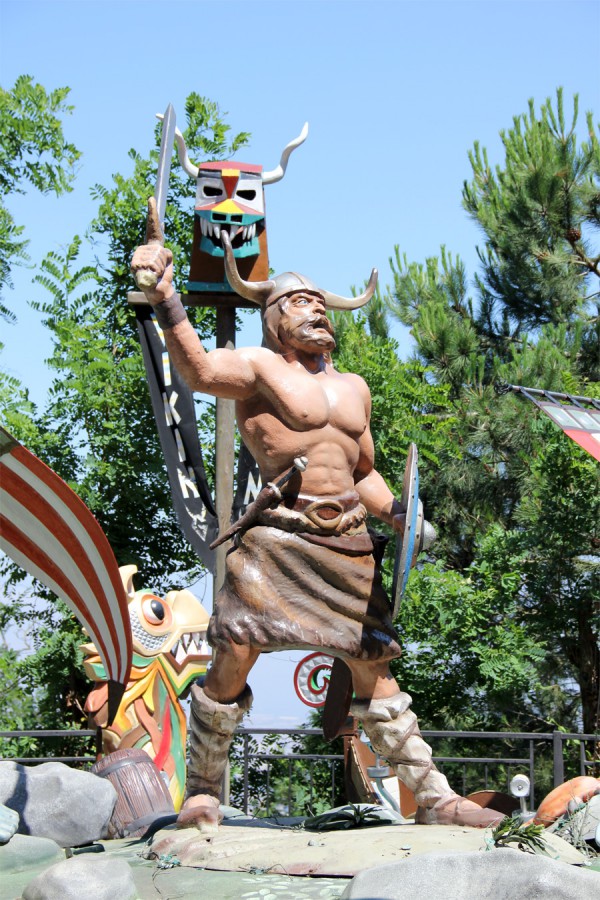 Вот развлечение для маленьких - катание на лодочках вокруг скульптуры викинга. Интересно то, что лодочки снабжены водяными пушками, из которых катающиеся поливают прохожих.