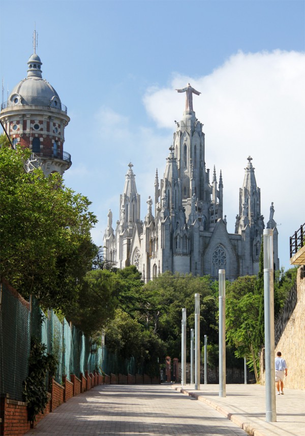 Находится парк на вершине горы Тибидабо - 512 метров над уровнем моря, оттуда открывается шикарный вид на Барселону. (Все фото кликабельны.)