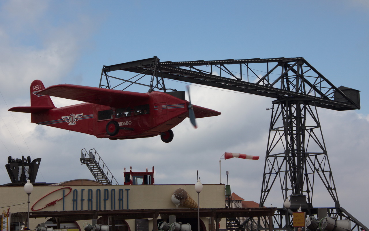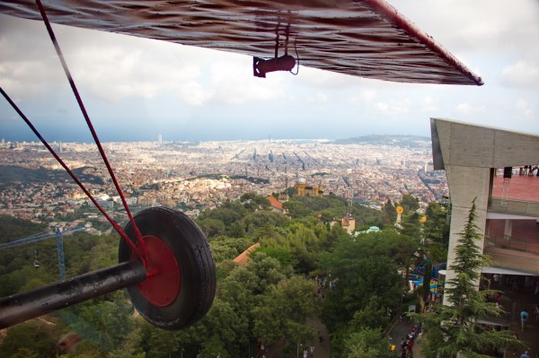 Один из символов парка "Тибидабо" и один из самых известных аттракционов - красный самолет, который представляет собой практически точную копию самолетика, летавшего из Мадрида в Барселону и обратно. Весь аттракцион заключается в том, что самолетик делает пяток кругов, перемещаемый специальным краном, но вообще интересно ощутить себя пассажиром этой древности.