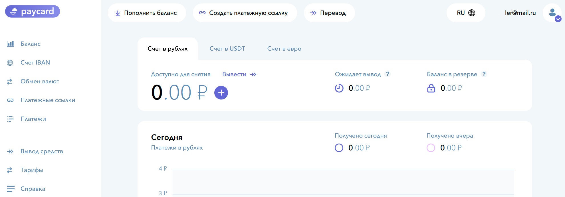 Для работы с сервисом paycard.link нужно зарегистрироваться: адрес электронной почты и пароль. Для ввода денег в систему больше ничего не нужно, однако для вывода денег из системы от вас потребуют пройти верификацию личности (этого требуют все платежные системы), причем для верификации они используют известную систему sumsub, я ее встречал на многих платежных системах.