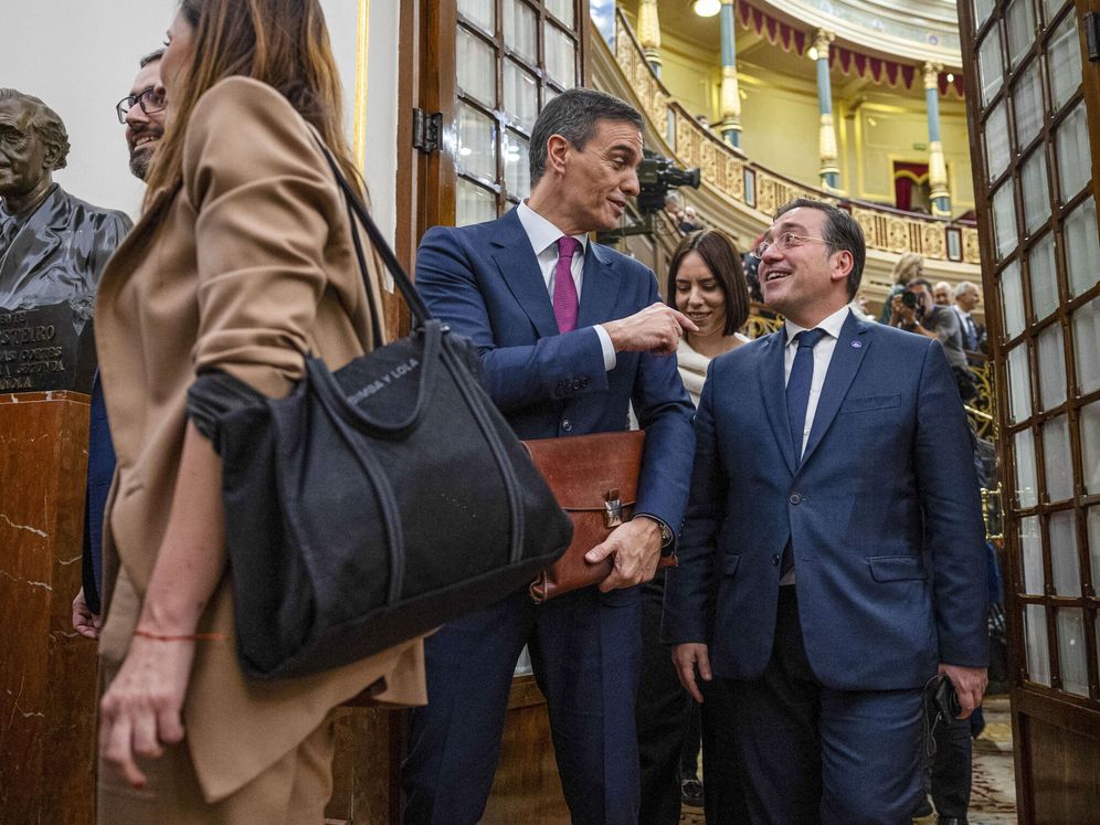 Педро Санчес с Хосе Мануэлем Альбаресом в Конгрессе (EFE / Daniel González)