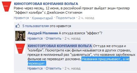 Наконец-то раскрыта великая загадка того, почему наши дебилы-локализаторы названия зарубежных фильмов не переводят, а дают совершенно от фонаря. А ведь казалось бы, что название должно быть защищено авторскими правами. Это ведь дело создателя фильма - какое этому фильму дать название. Что при этом требуется от локализатора? Адекватно перевести название. Если там в названии содержится какая-то идиома, которая будет непонятна нашим зрителям, то нужно подобрать аналог на русском. Все.
