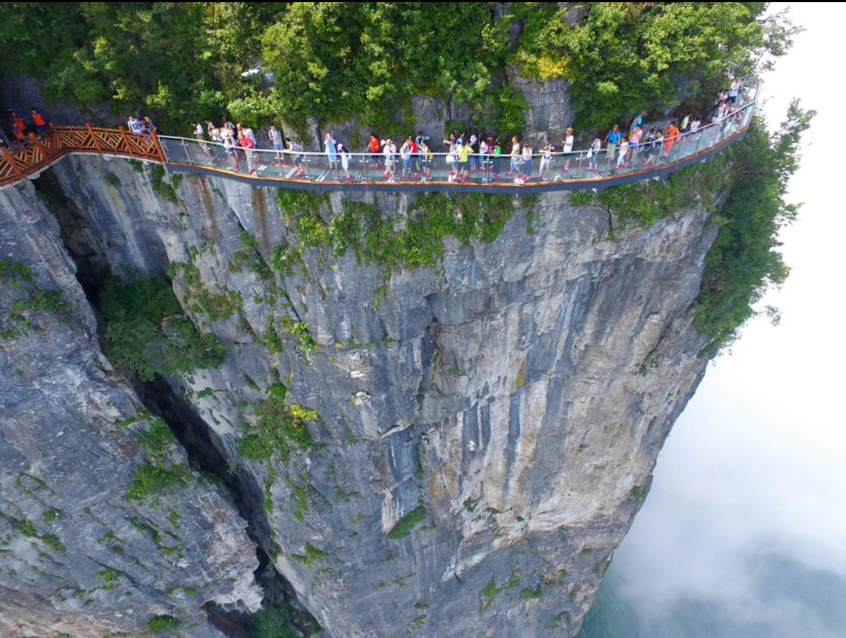 Обожаю рассматривать фотографии из подобных мест (дорога над пропастью с прозрачным полом на полуторакилометровой высоте - это в Китае в Hunan's Zhangjiajie National Forest Park) и давать себе страшную клятву никогда-никогда туда не ездить!