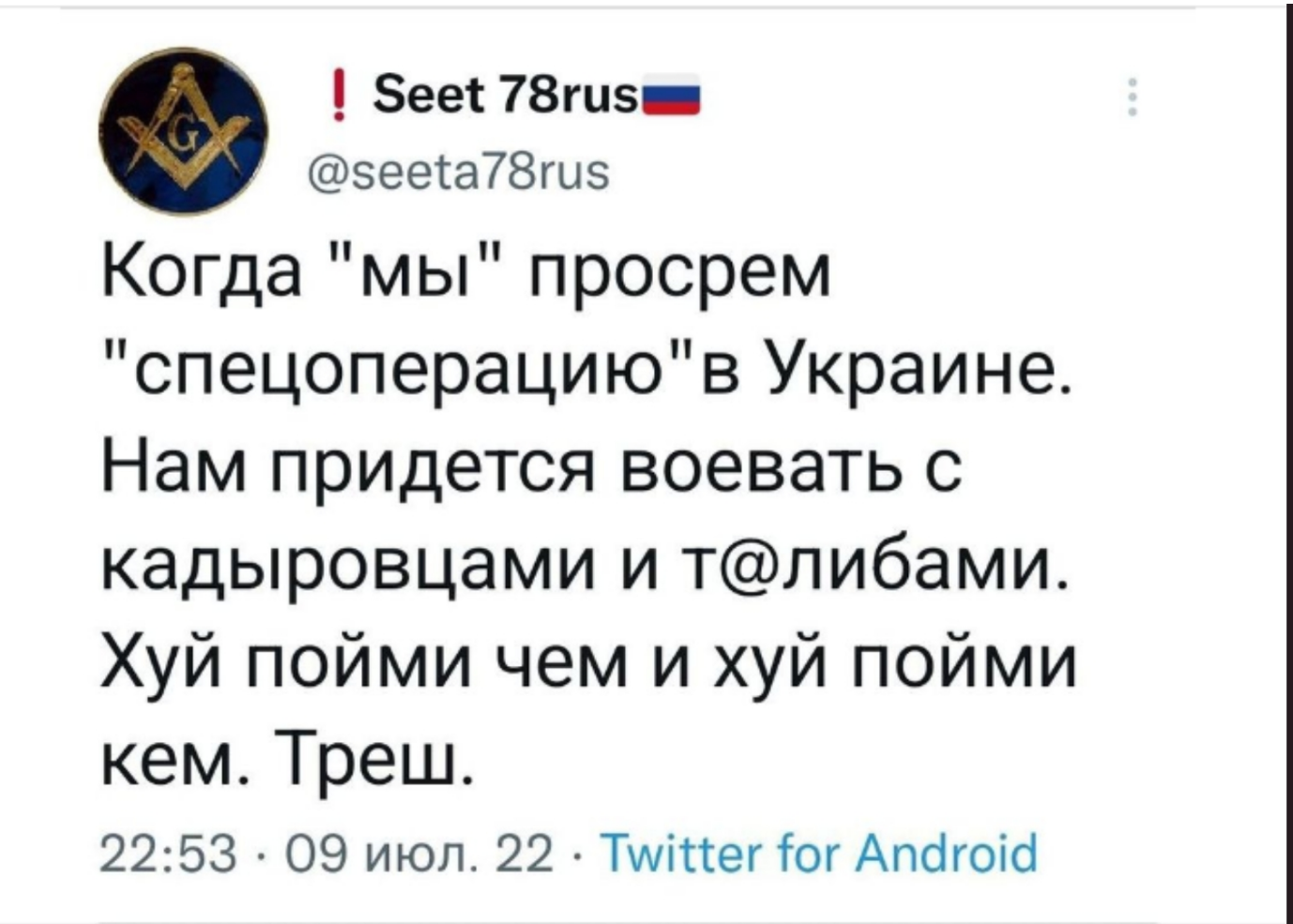 И этот факт никак не мешает мне считать хуйло хуйлом, а российскую армию — охуевшими агрессорами, а нацистские высеры — нацистскими высерами.