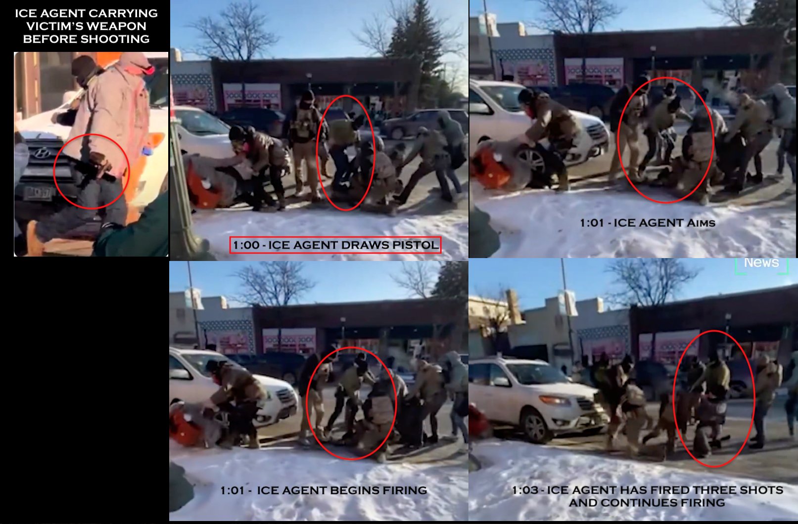 Также согласно анализу видео инцидента, проведенного CNN, один из сотрудников федеральной иммиграционной службы забирает у Претти пистолет еще до того, как начинается стрельба."