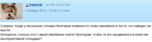 v1adimir: Черт, standalone.com и .org уже заняты! Правда standalone.net продается, свего 76380 руб.