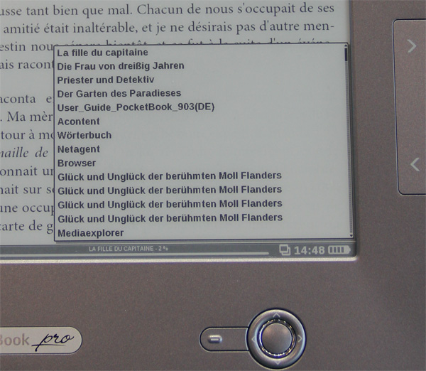 А вот список недавних книжек и приложений - вызывается по пиктограмме снизу.