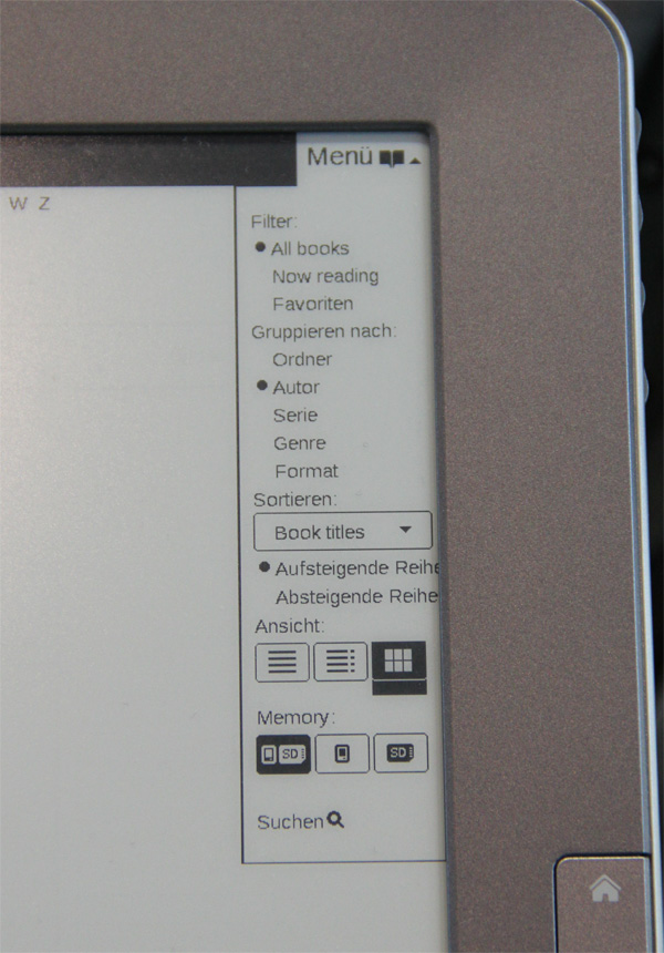 Кстати, для обычных ридеров они софт доработали. Книжная полка стала вменяемой (была не очень) - вот виды отбора-сортировки на девятидюймовом ридере.