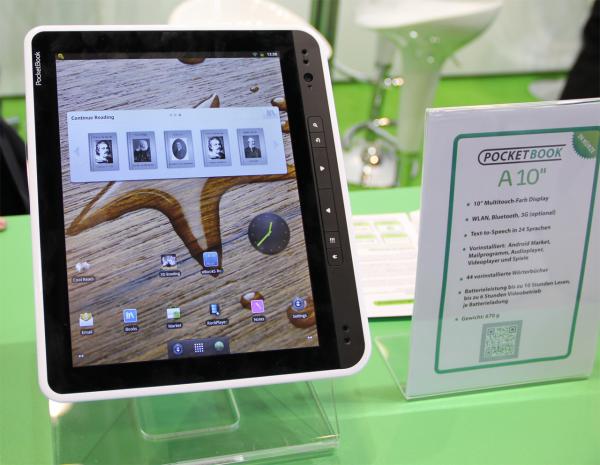 На IFA-2011 свой десятидюймовый планшет представила компания PocketBook. (Не секрет, что практически все производители ридеров сделали свои варианты планшетов.) Называется PocketBook A10. Технические характеристики видны на скриншоте (кликабельно).
