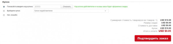 Несмотря на то что, скидка одноразовая, движок позволяет оформить ее дважды на один товар. Я даже знаю зачем - чтобы аннулировать потом все заказы 😄 Поэтому второй раз не оформлялся - просто из интереса дошел до кнопки оформления заказа.