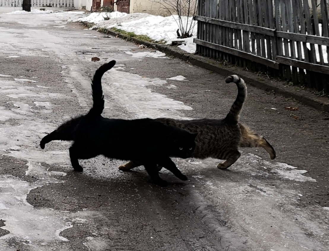 Это была во дворе такая артистичная банда, двое этих братьев и черная сестра. Где то есть видео, как они танец хвостов исполняют. Всё никак не соберусь на него звук Болеро наложить! 😄