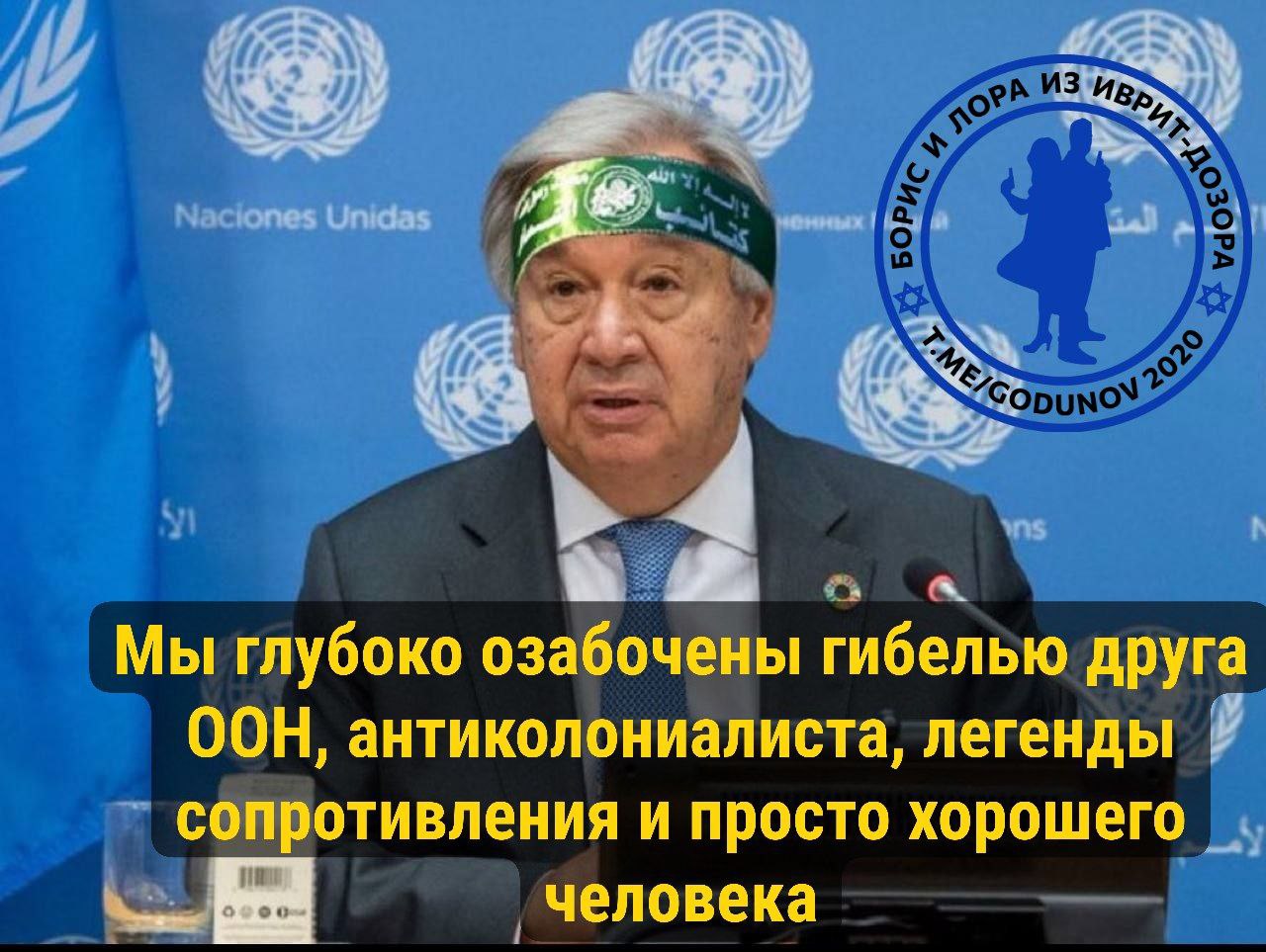 Главаря ХАМАС Ихьи Синвара израильтяне грохнули вчера, а глава ООН Антониу Гутерриш до сих пор не проронил ни слова по поводу нового ужасающего преступления против мирных палестинцев, которые всего-то хотят, чтобы никакой Израиль и никакие евреи не существовали, а евреи с этой постановкой вопроса почему-то не согласны.