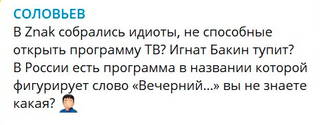 С нетерпением жду, как Ургант повеселится на эту тему)))) Соловьеву все таки иногда лучше молчать, чем говорить).
