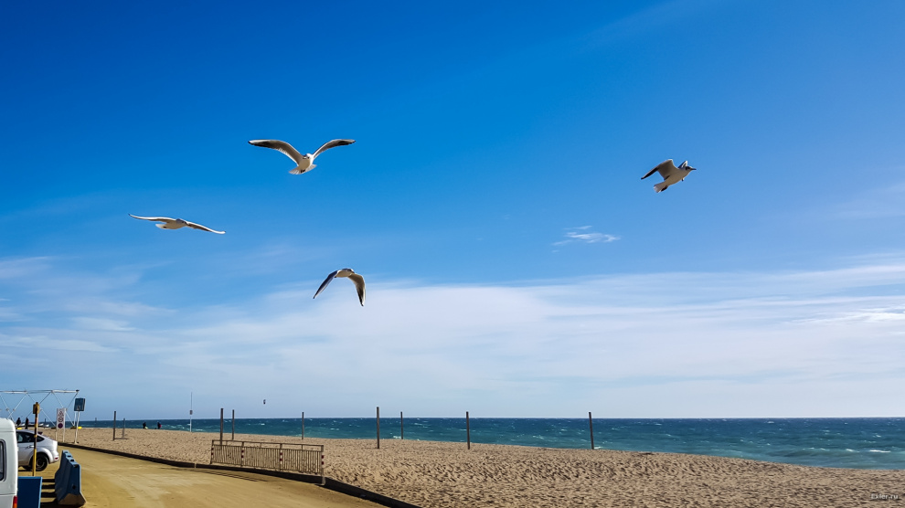 На набережной сегодня был такой ветрила, что чайки, бешено работая крыльями, могли только оставаться на месте. Зачем им это было надо - не знаю, но они на этом месте висели довольно долго. Может, просто тренировка такая? Ну, час спорта вместо бокала вина.