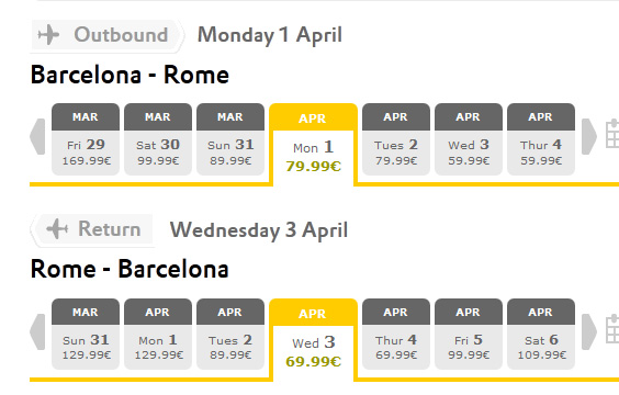 Здесь же, под Барселоной, эти вопросы решаются за полчаса. Вот как-то так получается. Например, узнал я, что мои американские друзья прилетают в Рим. Узнал об этом днем. Полез смотреть рейсы: в Рим из Барселоны в день - пять рейсов. За дикие деньги - примерно 60-100 евро билет в один конец. Взял на сайте компании билет на 18:20, на телефон пришел QR-код с посадочным (даже не надо распечатывать), забронировал тот же отель, что и у друзей.