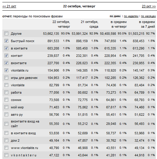 m@ksim: На сайте одноклассники.ру нет счетчика LiveInternet, поэтому в статистике LiveInternet нет их поисковых запросов.