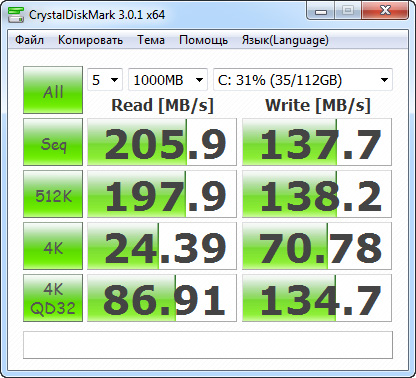 Но даже на 2-й "сате" последовательное чтение SSD должно быть в районе 260-270...