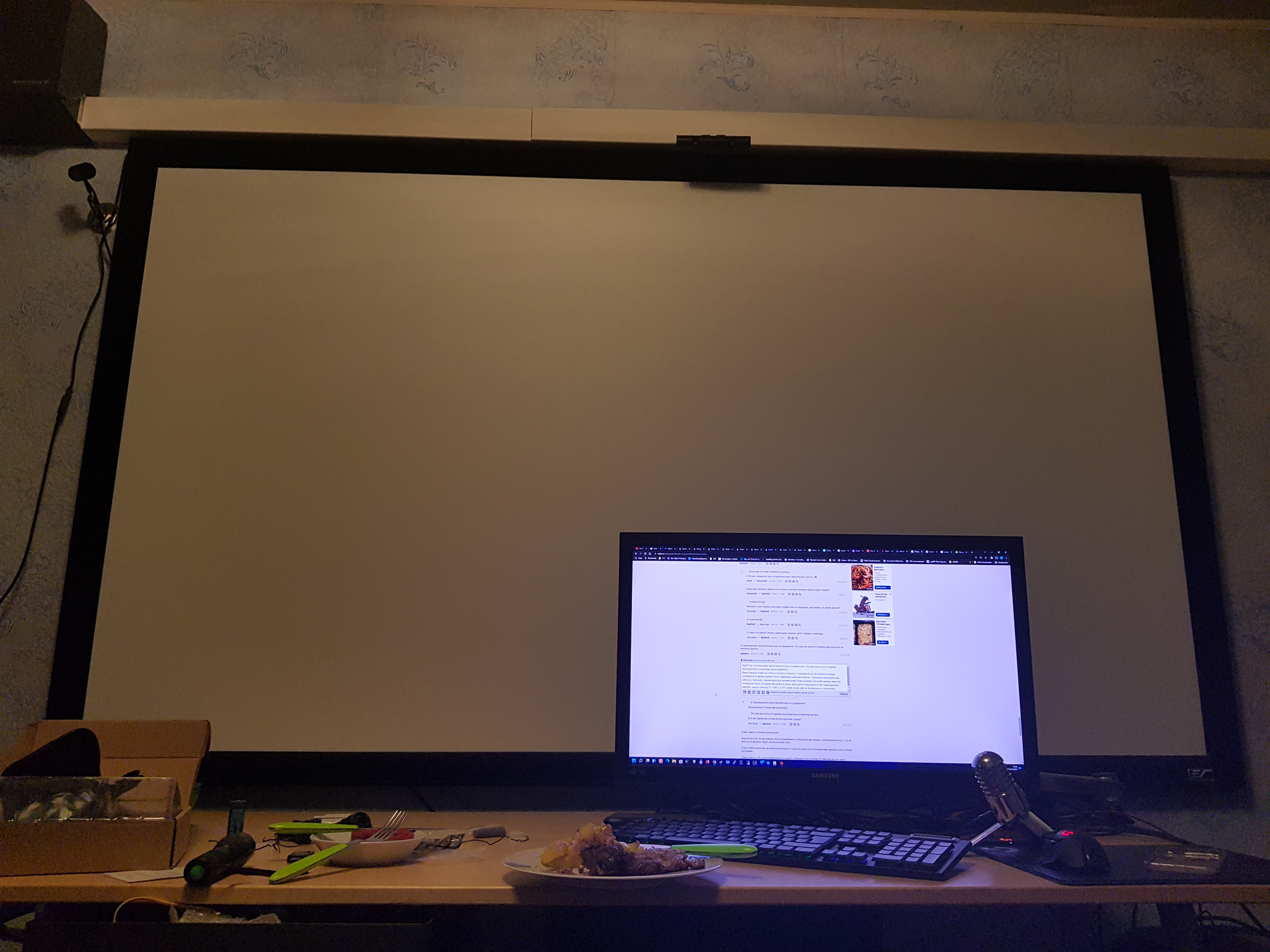 Всё это на одном мониторе мне неудобно. Разделил: 22' - 27' - 22'. Понимаю, что по нищебродский, и хотелось бы больше, но, что имеем, то юзаем)