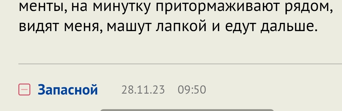 И да, я неоднократно слышал от коллег в свой адрес слово "предатель". Потому что я не поддерживаю ментовскую омерту, и четко следую присяге. У меня есть честь, в отличие от них. Я служу гражданам, а не наоборот.