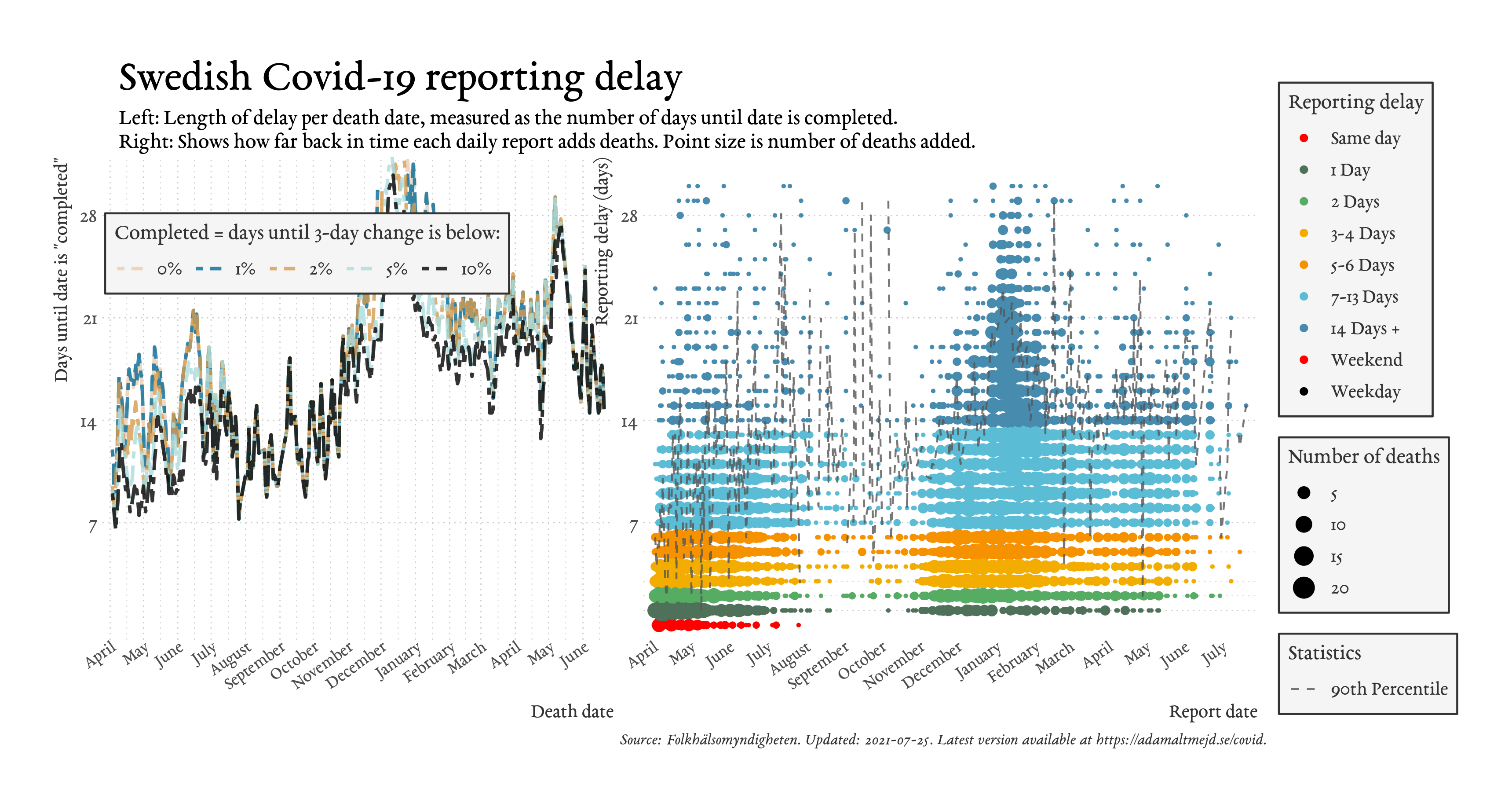 Каковы результаты высмеиваемой шведской политики невмешательства? Данные показывают, что 7-дневное скользящее среднее число смертей от COVID вчера было равно нулю. И вот уже неделю он находится на нуле.