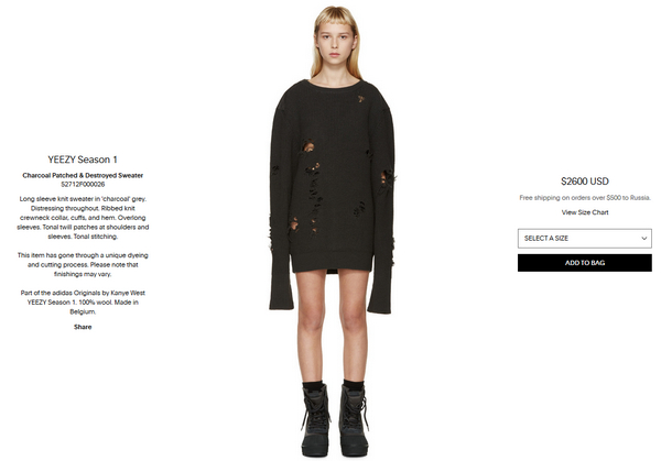 А мне интересно, если в таком виде пойти в хороший и дорогой ночной клуб со строгим фейс-контролем, то на входе распознают ли, что это не в бомжа снял, а купил за 2600$ дизайнерскую вещь.. 😄