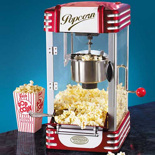 Алекс, попкорн прекрасно делается в микроволновке (в специальной посуде) или даже на сковородке (закрытой). Остаётся только купить этих волшебных зёрнышек.