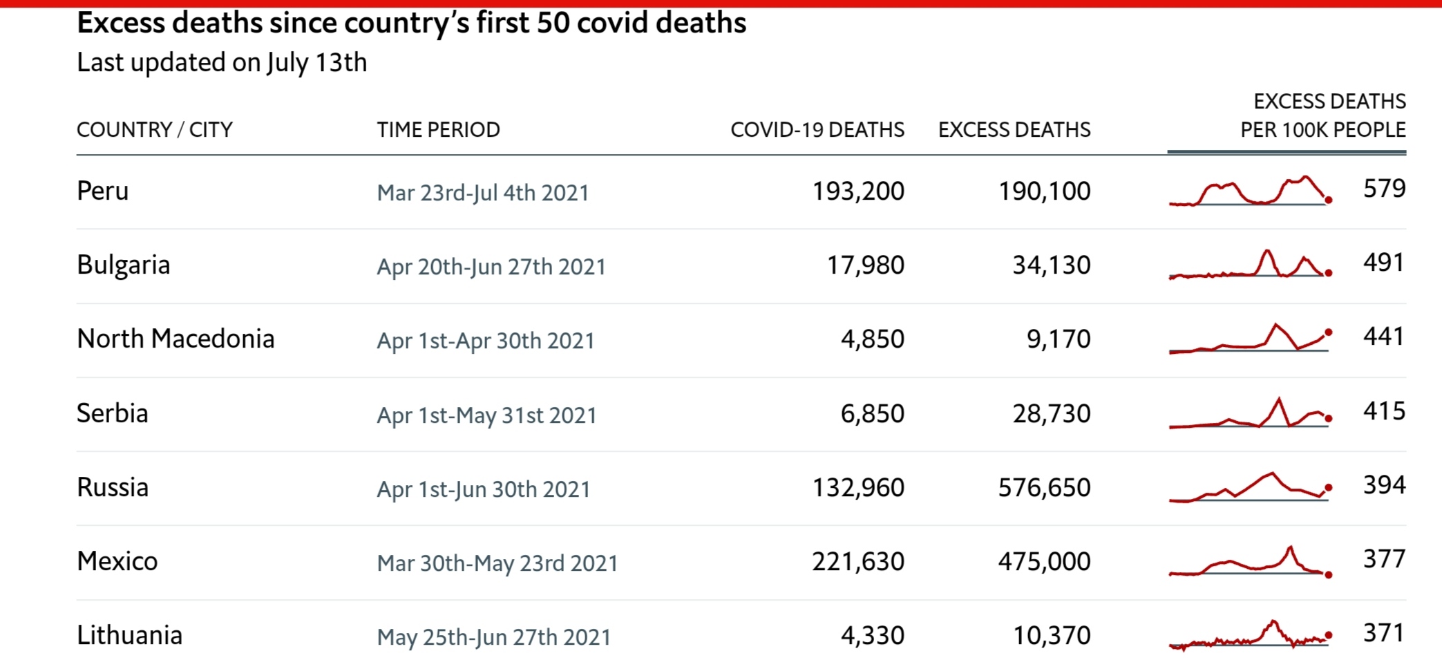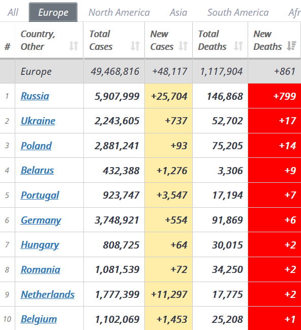 По избыточной смертности Россия уже почти всех давно обогнала(смотрим на последний столбец)