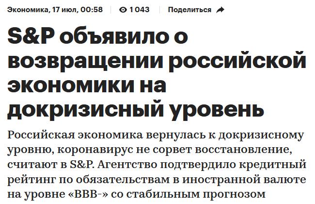 PS: для понимания, в Европе тоже идёт восстановление, причём в среднем на больший процент (4,8% против 3,7%), просто в Европе и экономика в среднем чуть больше проседала (поскольку было чему проседать). В Европе, в среднем, восстановление планируется на последний квартал этого года.