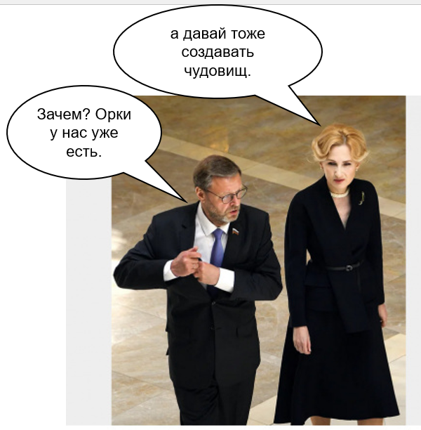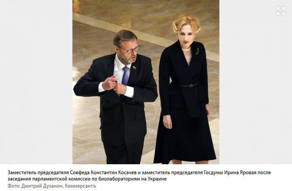 В Совете федерации в понедельник прошло очередное заседание парламентской комиссии по расследованию деятельности американских биолабораторий на территории Украины. Как заявили сопредседатели комиссии, анализ крови украинских военнослужащих показал, что они подвергались «секретным экспериментам», в результате которых были превращены в «жесточайших чудовищ». (Отсюда.)