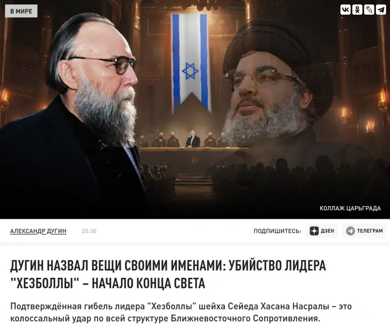 P.S. А как красиво-то Дугина корежит - любо-дорого посмотреть. Какой Насраллой он был, рыдает Дугин.