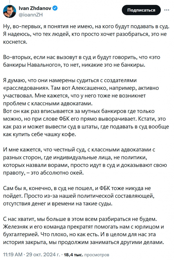 Пост директора ФБК Ивана Жданова. Кажется, это называется: "Ой, ну всё!"