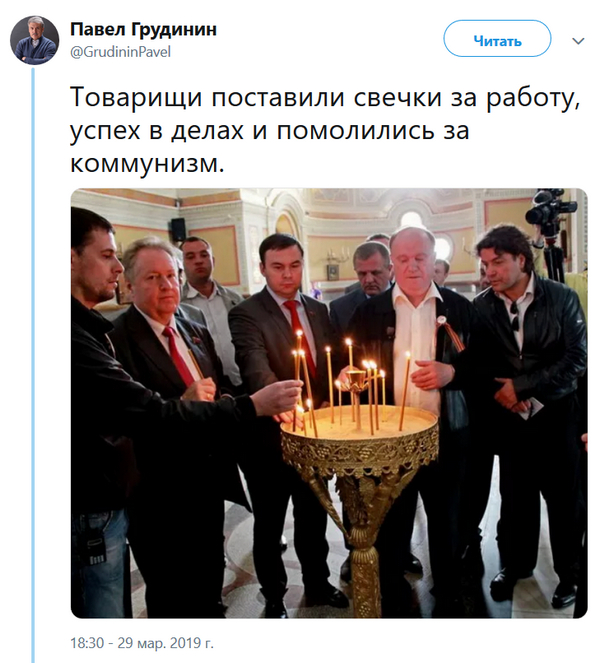 Воцерковленные коммуняки - это всегда безумно смешно. Вот ссылка на источник, но ходить не советую - пованивает. Впрочем, что собой в действительности представляет этот клубничный сталинист - отлично было понятно по первому же его появлению на "Эхе".