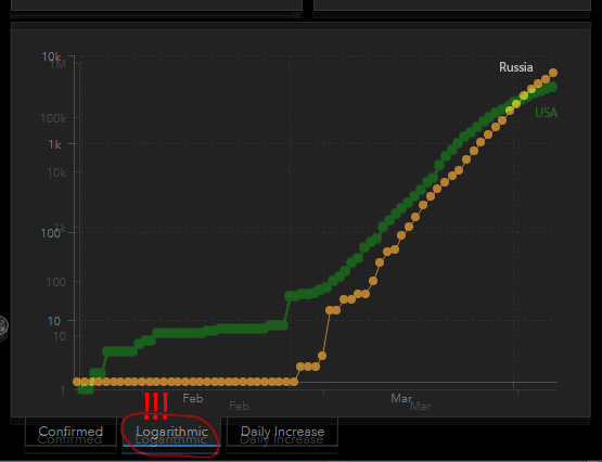 Так что интереснее было приложить российский график к началу графика США / Италии / Испании, но в одинаковом масштабе, и прикинуть, что может ожидать дальше...