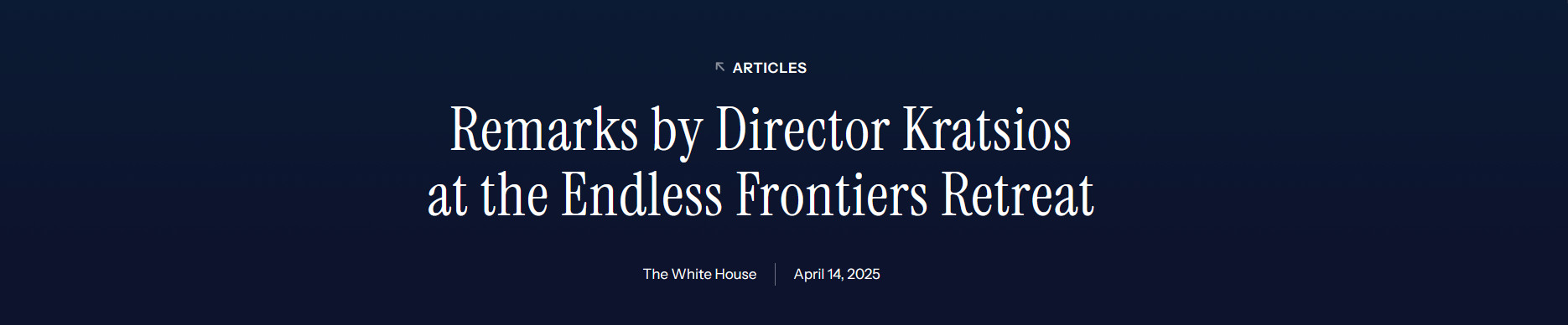На сайте "Белого дома" опубликован текст выступления Директора Белого дома по вопросам науки и технологий, главного научного советника президента США Дональда Трампа Майкла Кратсиоса.