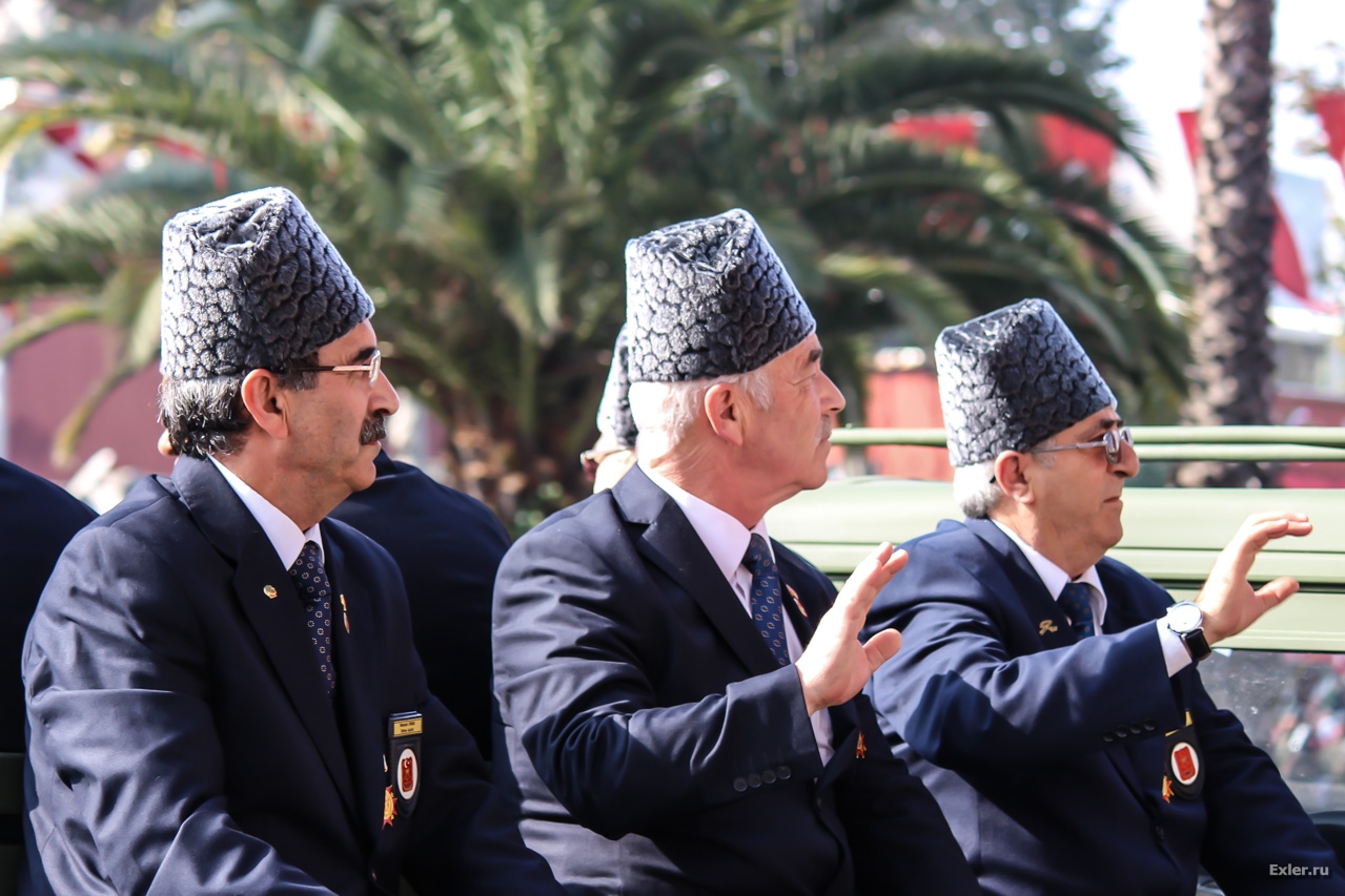 Теперь впечатления о праздновании. Сам парад не особенно впечатлил, но люди там собирались явно далеко не только для того, чтобы посмотреть на шествие военных и школьников. Они приходили целыми семьями, почти все несли самые разнообразные национальные символы с турецким флагом и портретом Мустафы Кемаля Ататюрка - создателя Турецкой Республики. Обстановка была очень веселая, доброжелательная. Полицейские также вели себя очень доброжелательно и общались с собравшимися.