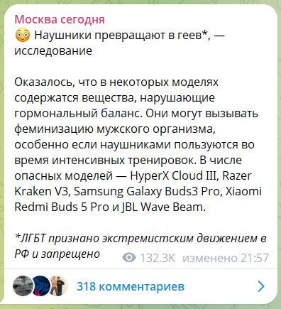 Откуда ТГ "Москва сегодня" взял конкретные модели наушников