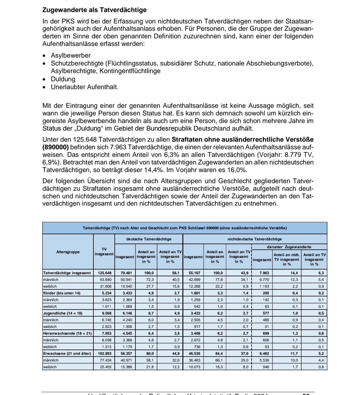 По совокупным данным за наиболее распространённые и тяжкие преступления (кражи, грабежи, сексуальные преступления, незаконные захваты помещений), доля иностранцев среди задержанных составляет около 84 %.