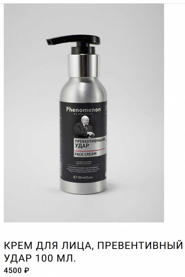 Российский парфюмерный бренд Phenomenon выпустил в продажу антивозрастной крем для лица "Превентивный удар". Способ применения: крем нужно превентивно наносить на то место, откуда на Беларусь готовилось нападение.