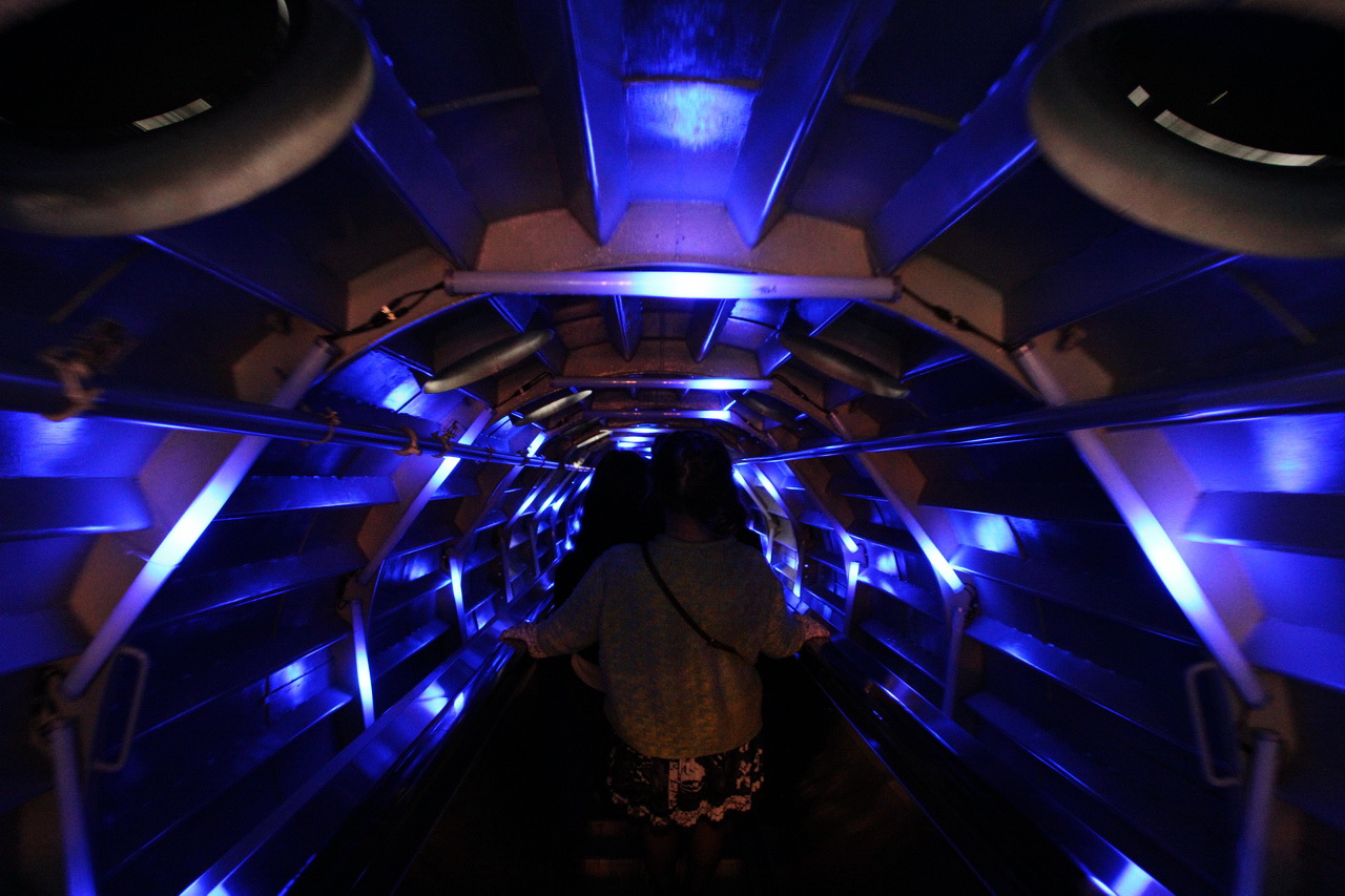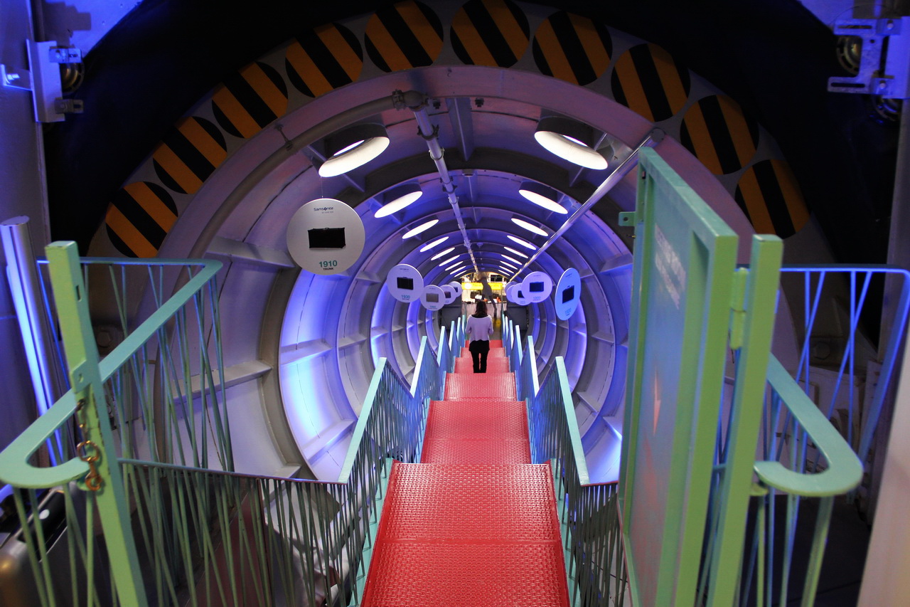 Презентация была в самом нижнем шарике. Туда надо было сначала подниматься на лифте, а потом спускаться вот по такой лесенке.