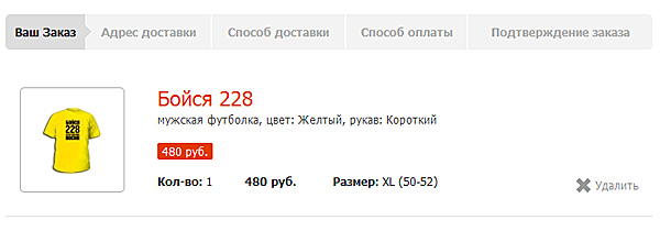 Выбрали - кинули в корзину. Теперь или выбираете еще пять, десять, пятьдесят, двести пятьдесят маек, или же идете оформлять заказ.