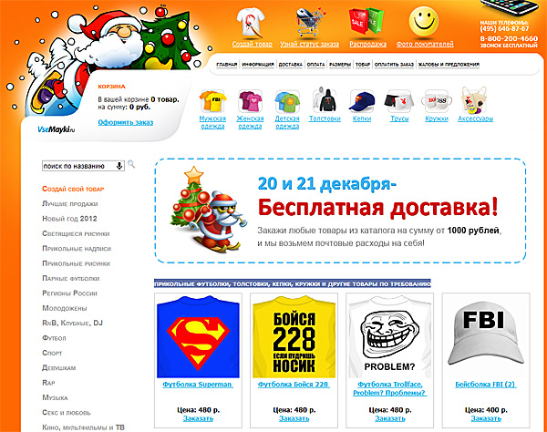 А где подобрать соответствующую майку, а к ней надпись, а к надписи картинку, да чтобы облегла так, что все просто ахнули? Только на сайте Всемайки.ру! (Взрыв восторга аудитории, апплодисменты, переходящие в овации, затем в легкое землетрясение с последующим наводнением деньгами в виде заказов.)