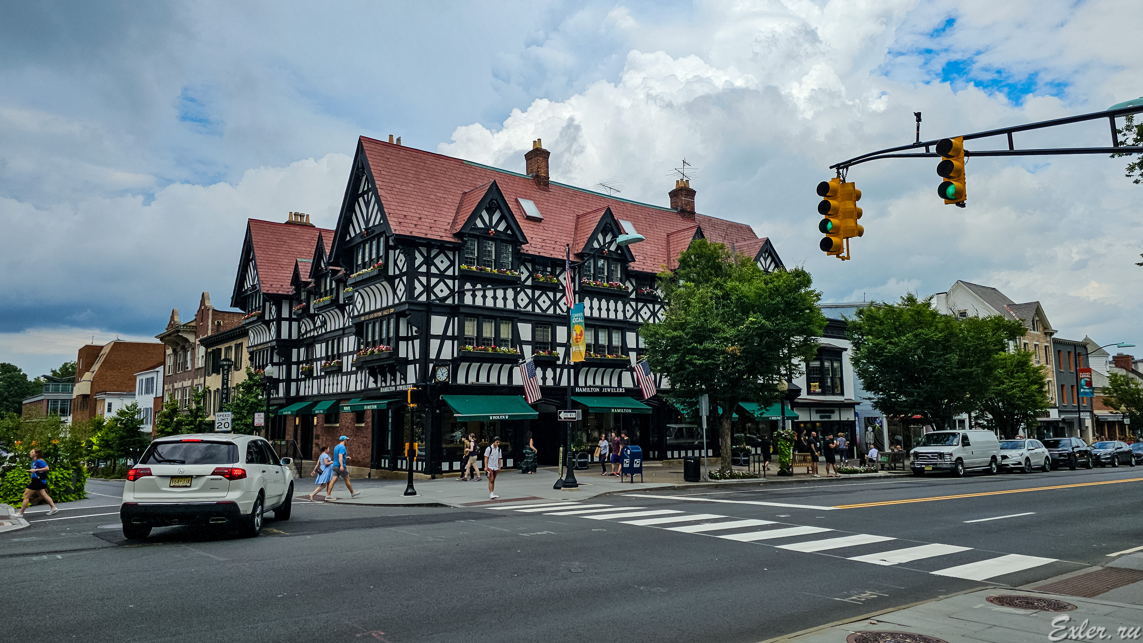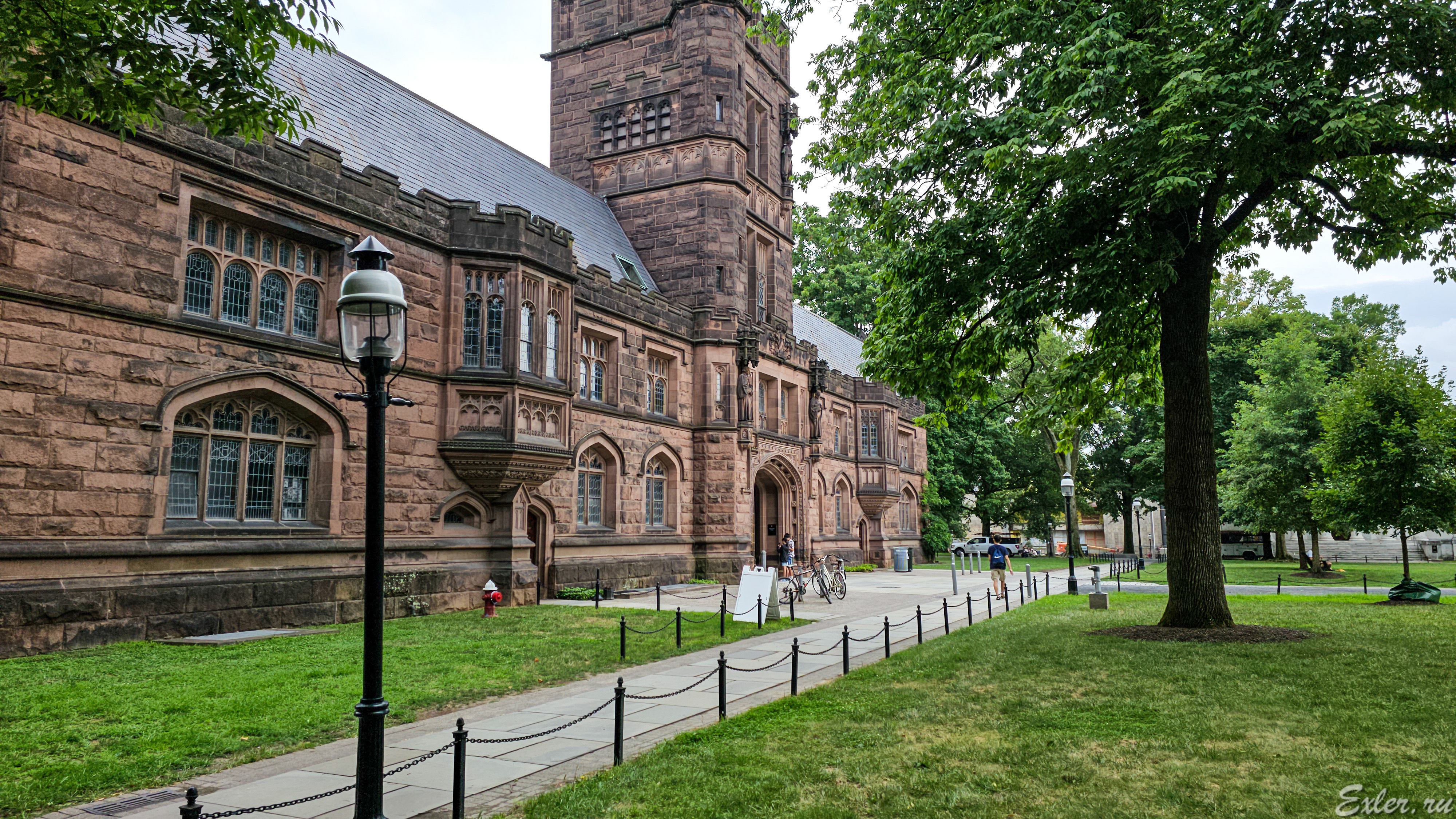 Ну и вот вход в кампус университета Принстона. Я вообще ожидал, что туда без палестинского флага или хотя бы без арафатки не пускают, но оказалось, что нет, пускают.